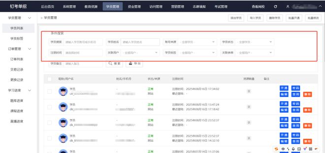 除了视觉层面的定制,钉考单招网校更在运营、教学、服务等关键环节提供高自由度设置,让机构能灵活应对市场变化,精准匹配学员需求。