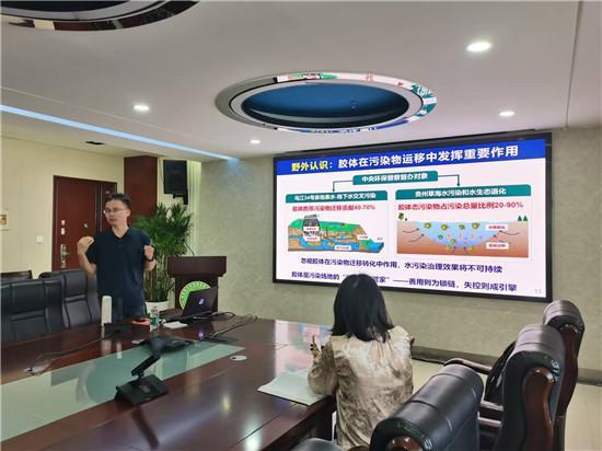 中国科学院地球化学研究所研究员廖鹏应邀作“水环境胶体地球化学行为与环境效应”专题报告。报告聚焦野外检测、实验室机理研究、数值模拟等方法,系统阐述了水环境典型胶体形成和地球化学行为机制及其调控典型污染物的迁移转化耦合,为有效水污染防控技术开发以及风险管控提供了重要的理论支撑和技术路径,拓宽了师生的学术视野。