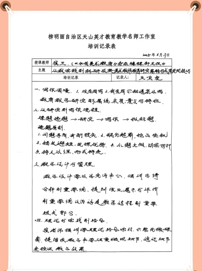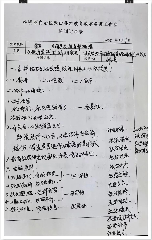 2025年6月17日,本次活动由自治区中小学美术研修工作室联合柳明丽“天山英才”名师工作室共同举办,特邀了国家级学术期刊《中国美术教育》杂志编辑部主任、执行主编崔卫老师主讲。崔老师身兼数职,既是南京师范大学硕士研究生导师、教育部学位中心研究生学位论文评审专家,也是包头师范学院、苏州幼儿师范高等专科学校客座教授及教育部“国培计划”培训专家,同时在多个学术组织担任重要职务。
